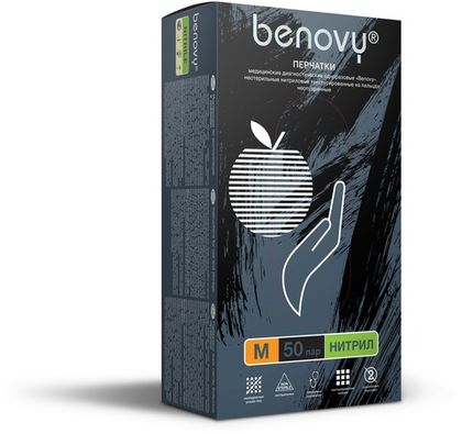 Перчатки BENOVY™ нитриловые 3,5гр. (50 пар), черный
