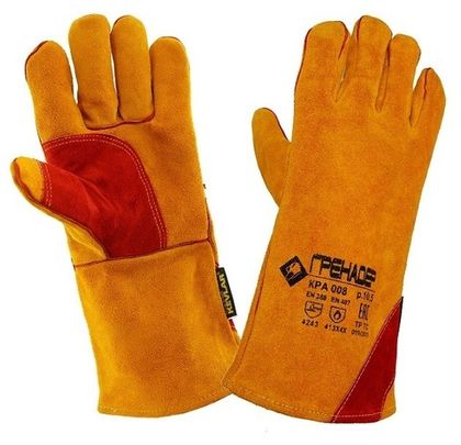 Краги спилковые ГРЕНАДЕР желтые с усилением и подкладкой, КРА008