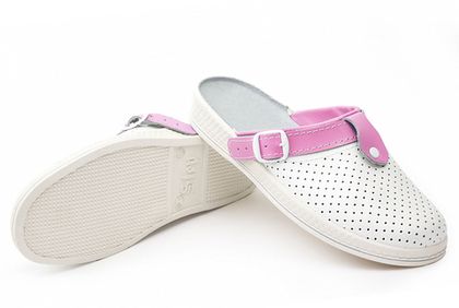 Сабо женские нат.кожа Комфорт ПВХ, белый/розовый