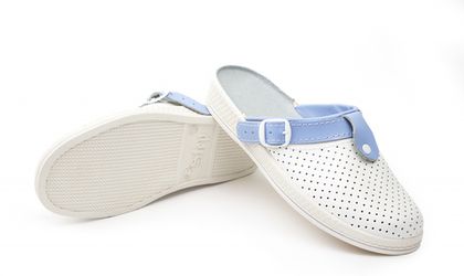 Сабо женские нат.кожа Комфорт ПВХ, белый/голубой