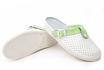 Сабо женские нат.кожа Комфорт ПВХ, белый/зеленый