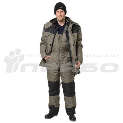 Костюм мужской утеплённый "Фаворит" тёмно-серый/светло-серый (куртка и полукомбинезон)