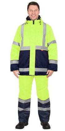 Костюм "СИРИУС-МАГИСТРАЛЬ-3" куртка, п/к, синий с лимонным (неоном) и СОП 50мм тк.Гретта