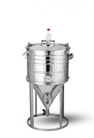 Цилиндроконический танк оснащен двумя герметичными кранами, расположенными в основании и на ребре конуса. Через нижний кран Вы сможете сливать осадок и регулировать содержание дрожжей в ферментере, через второй кран – разливать готовое пиво прямо в бутылки, выполнен из нержавеющей стали, из-за чего его можно чистить паром и без моющих средств, а благодаря высокой теплопроводности металла, молодое пиво можно быстро охладить, если того требует технология производства.Для удобства, пивоварный танк оснащен гидрозатвором, термометром. Эти мелочи помогут более точно следовать рецепту и соблюсти все рецептурные особенности.
